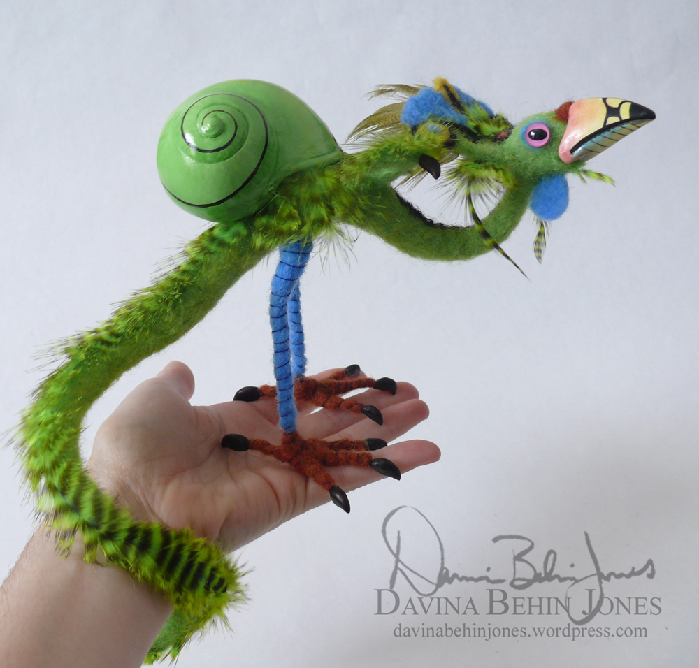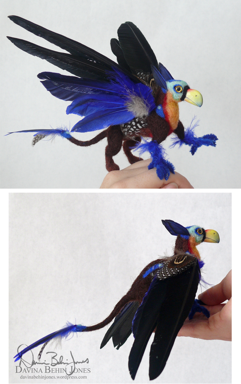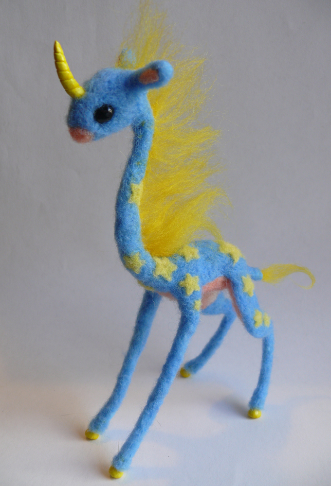 Snail Bird, needle felted wool and papier macheJames Baxter, needle felted woolManuscript Griffin, needle felted woolFantastic Anteater, needle felted wool with resin clawsGalidor, needle felted woolBlue Kirin with Mini Orange and Blue Kirin, needle felted woolPurple Kirin, needle felted wool