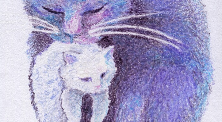 I made an oil pastel portrait of my mother-in-law’s cat, Peaches, for her birthday back before I was married to her son. I knew the cat was very near and dear to her heart and although the cat had passed over the rainbow bridge many years ago and I didn’t have the blessing of meeting her, my work gave me a special closeness to her. Looking into those majestic eyes, pouring over the photo references my husband — then boyfriend — smuggled to me, I felt like I had spent considerable time in her watchful presence.